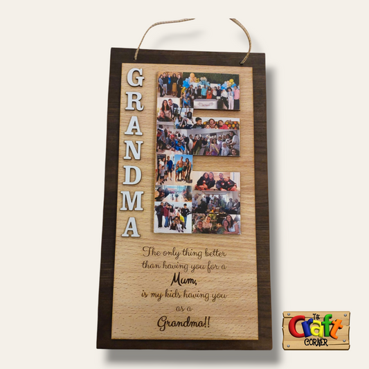 Board: Grandma/grandpa or mother picture initial wall plaque