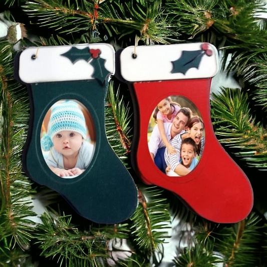 Ornament: Personalized Picture frame Wooden stocking