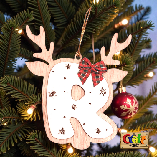Ornament: Personalized wooden initial ornament (Reindeer antlers)