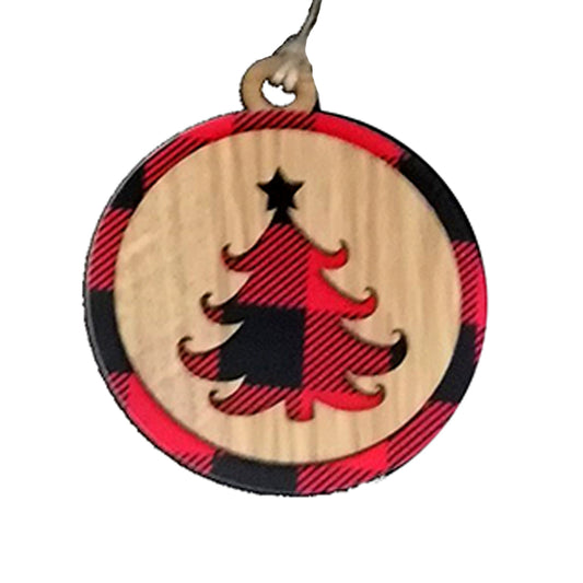 Ornament: Wooden buffalo plaid ornament