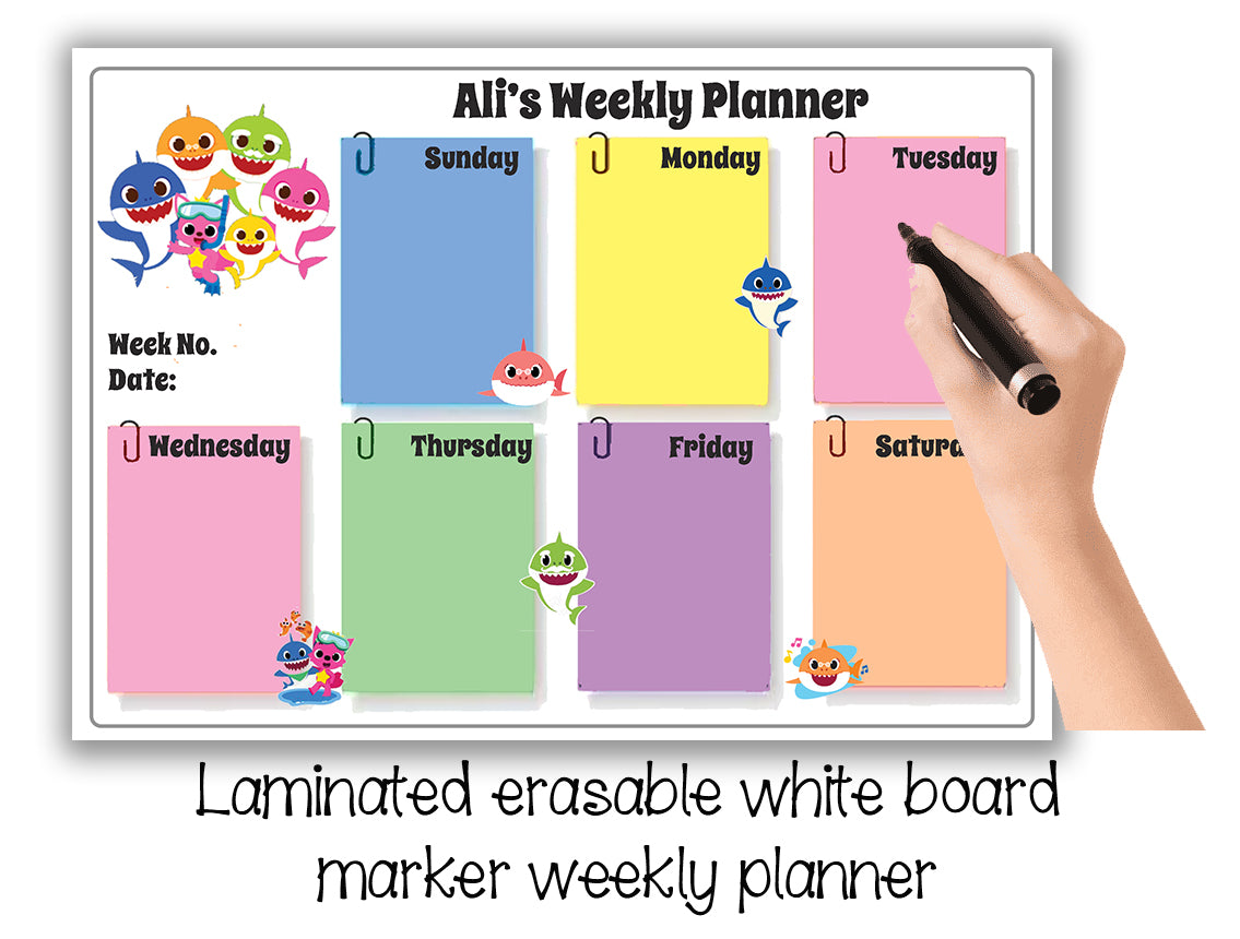 - Laminated weekly planner