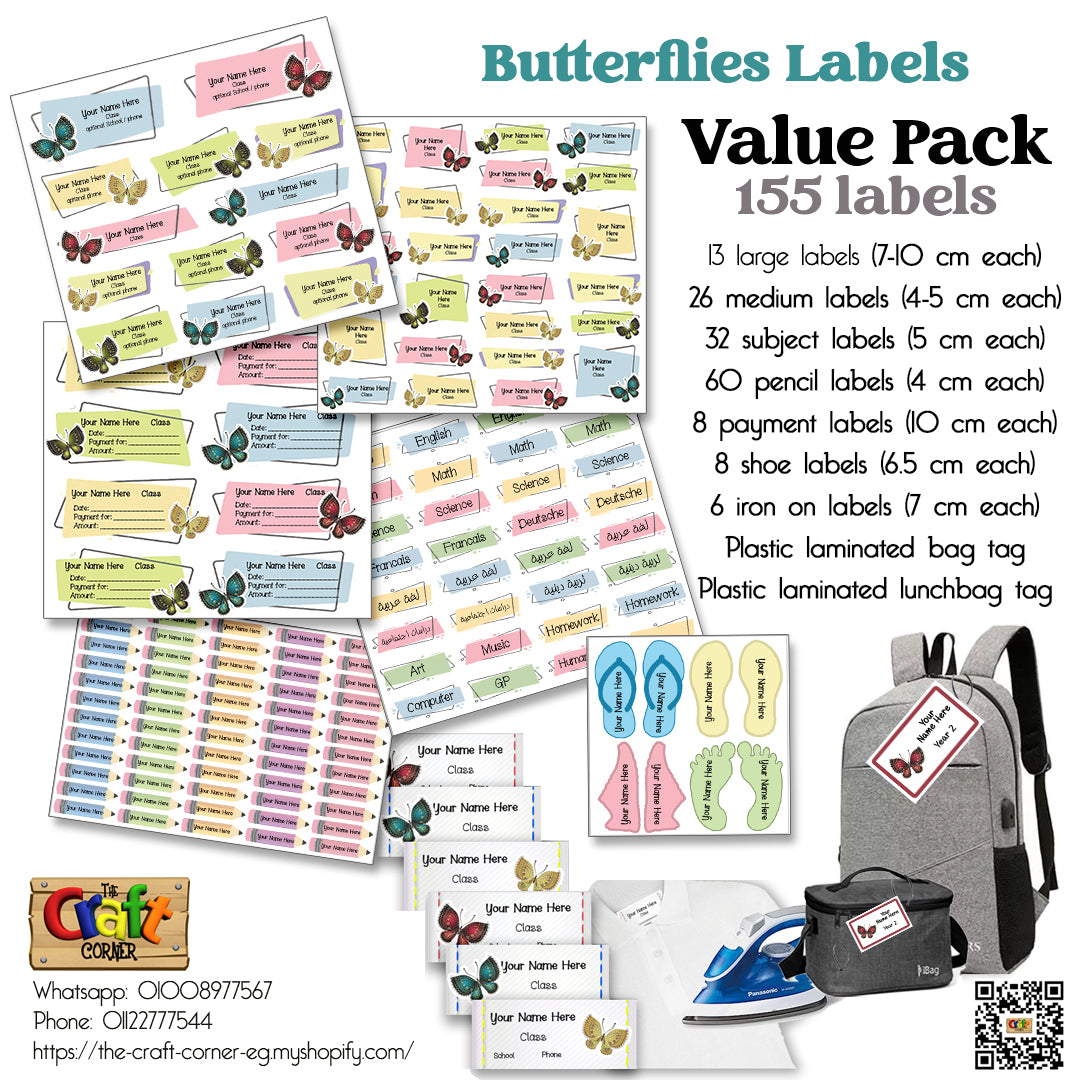 Value Pack (155 labels): Our most comprehensive option, featuring a wide assortment of labels for everything from clothing and shoes to books and stationery.