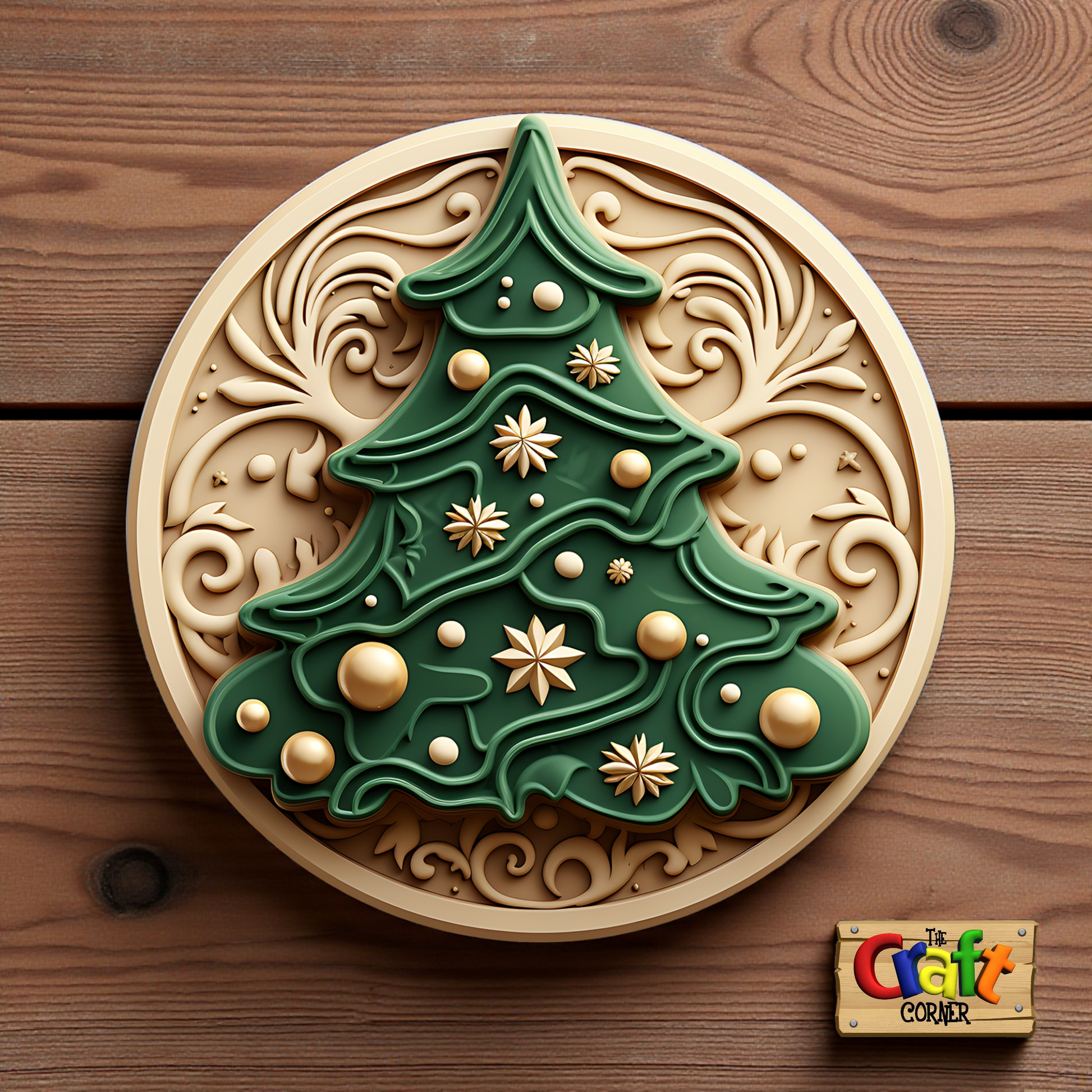Coaster: Wooden 2D printed Christmas coaster set (Vintage trees 1)