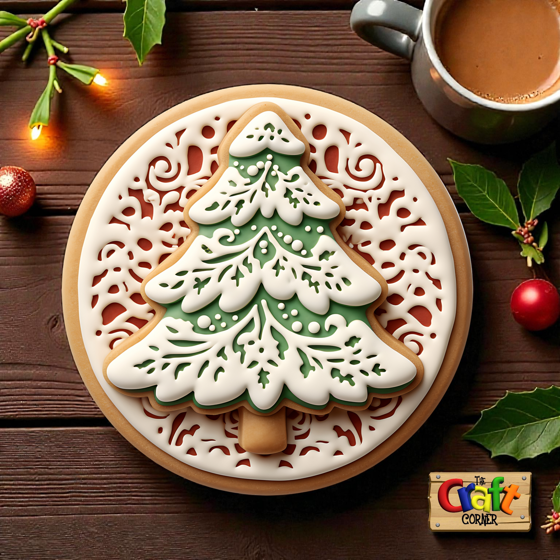☕ Holly Jolly Tabletop: Personalized Set of 4 2D printed Wooden Christmas Coasters