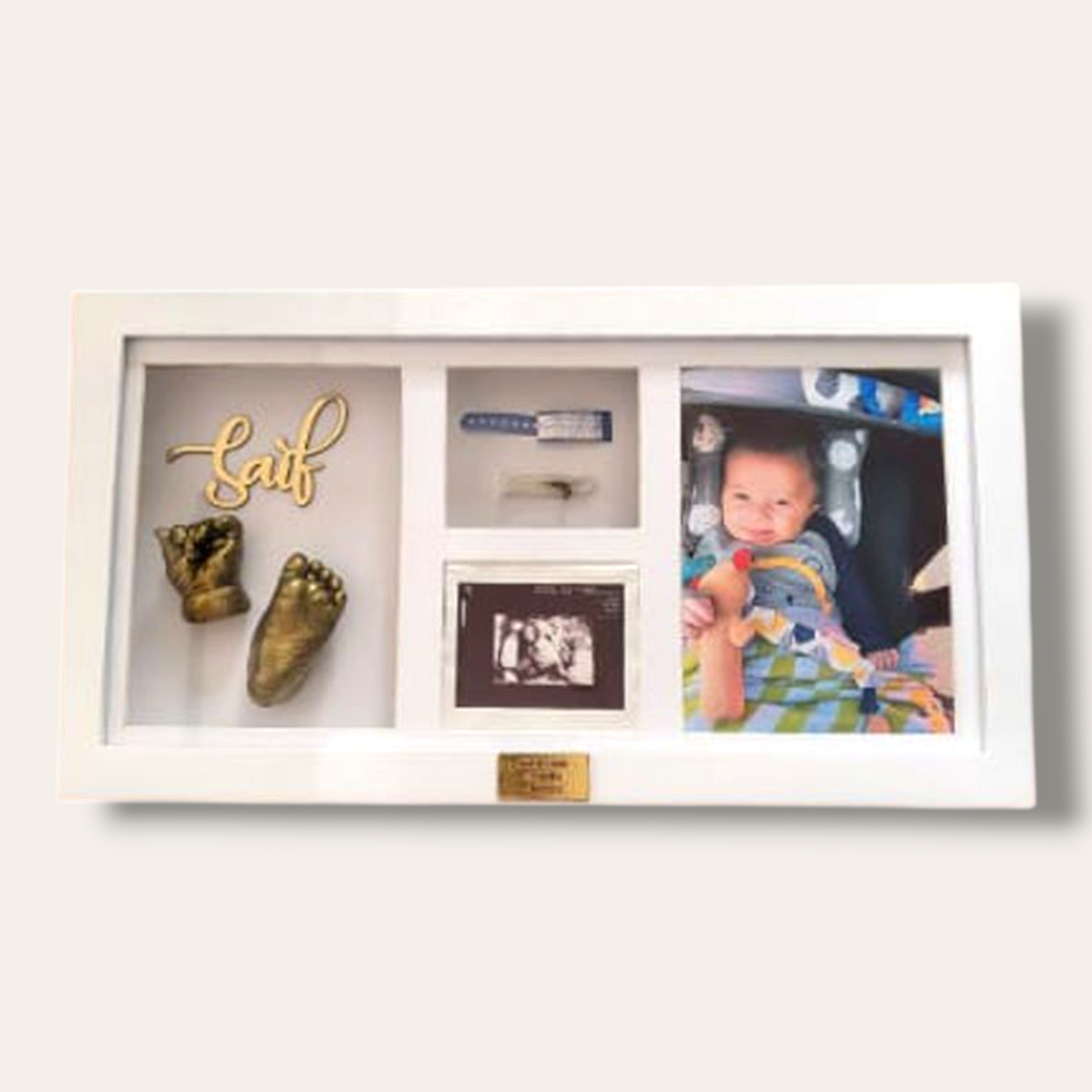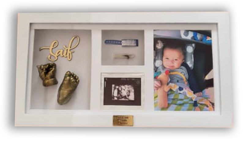 2 pictures (baby and ultrasound) and a space to put all your little memories