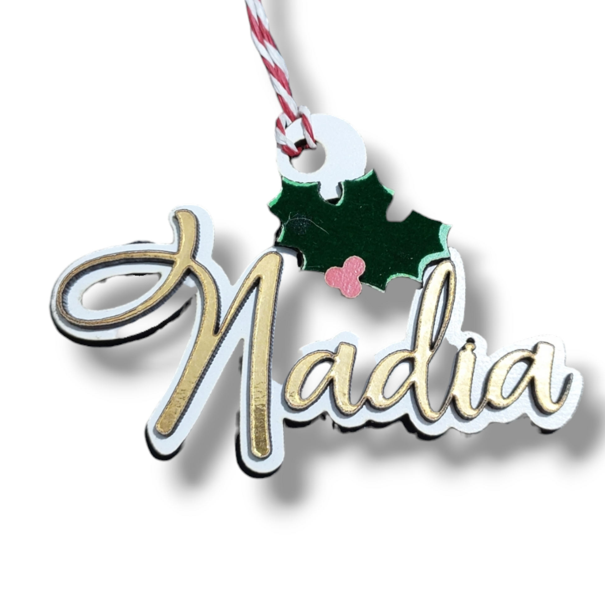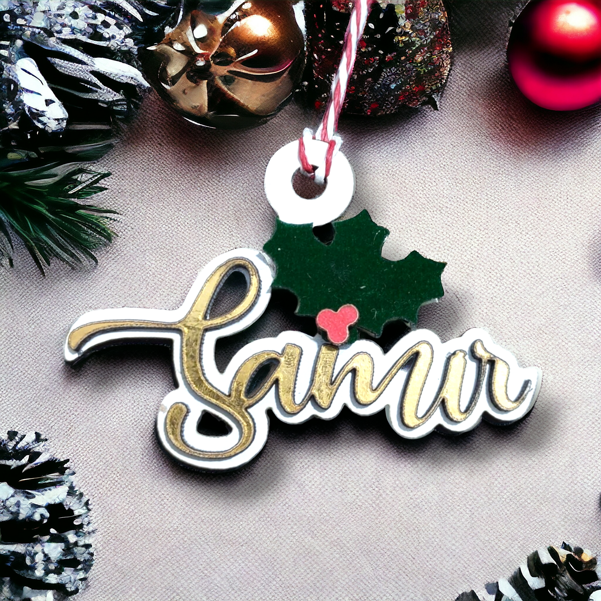 Your Name: Each ornament is personalized with Your Name (or a loved one's name), cut cleanly and displayed prominently in the beautiful layered golden script.