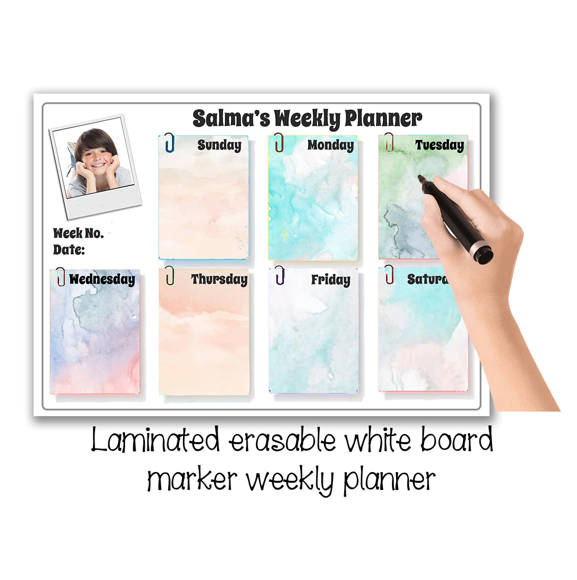 - Laminated weekly planner