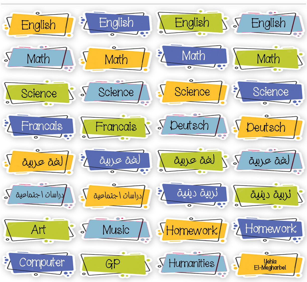 - 1 sheet subject waterproof labels without names (32 labels),