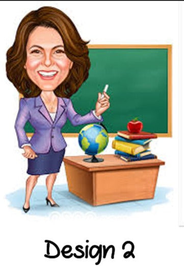 : Choose from four engaging designs that capture the spirit of teaching. Each design can feature the teacher alone or with a caricature of students, adding a touch of humor and personality.