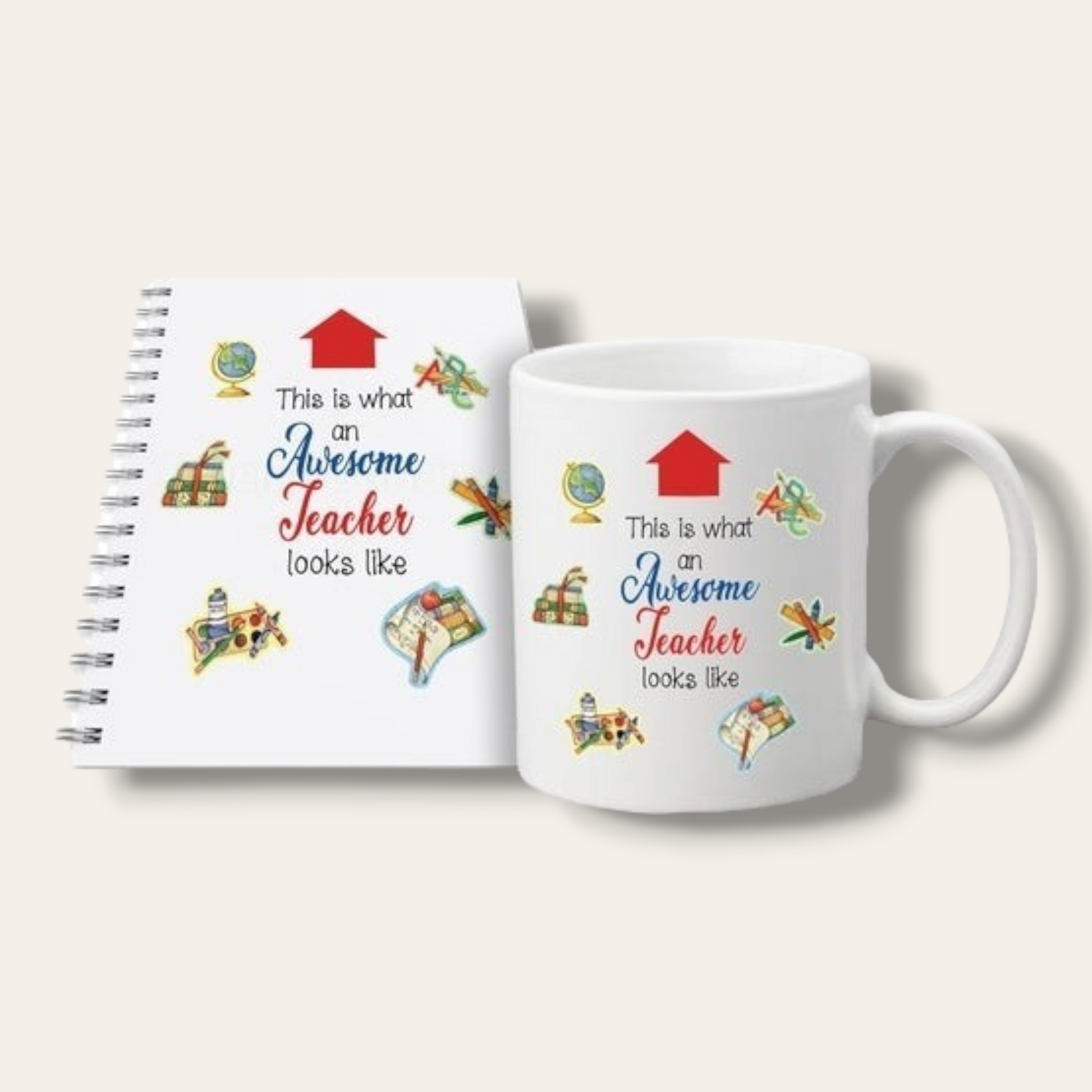 : Add a personal touch by having the teacher's name printed on both the mug and notebook, making it a unique and special gift.